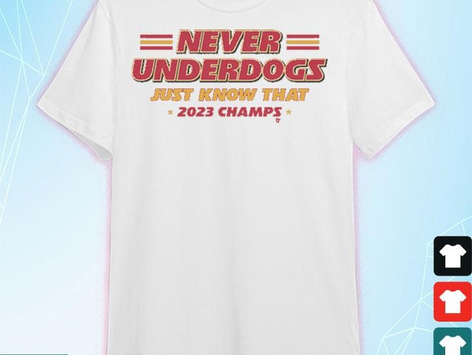 Never Underdogs Just Know That Kansas City Chiefs 2023 World Champions Shirt